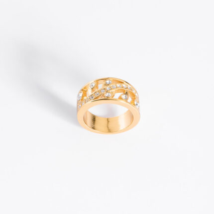 ANILLO EN BAÑO DE ORO CON PIEDRAS COLOR CRISTAL MEDIDA 6