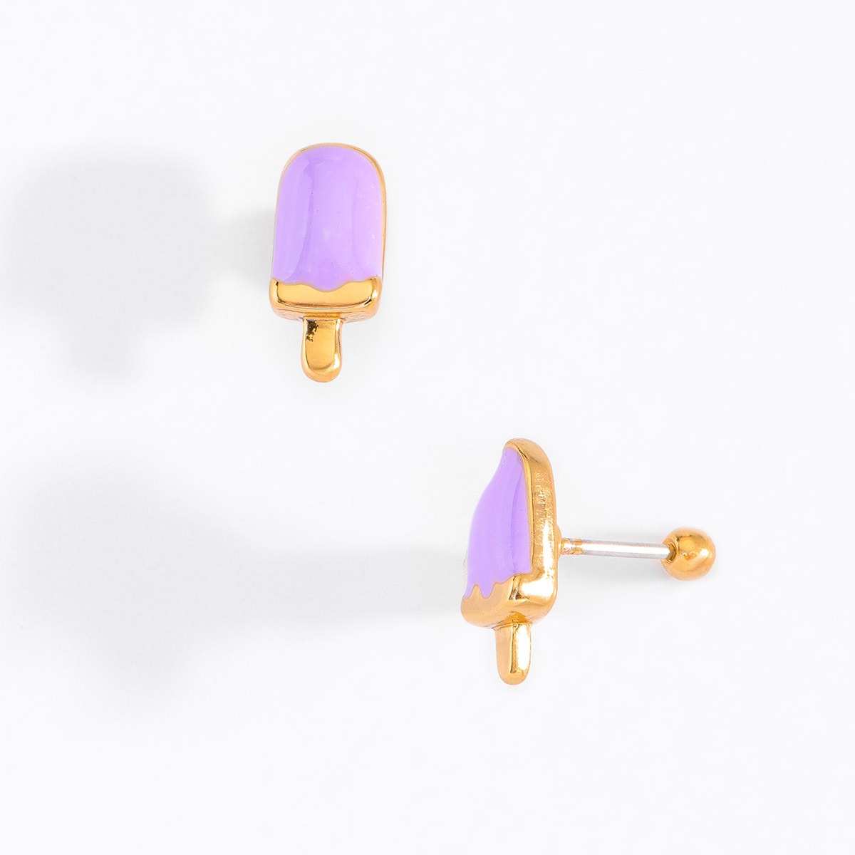 ARETES CON POSTE EN BAÑO DE ORO CON ESMALTE EN TONO MORADO