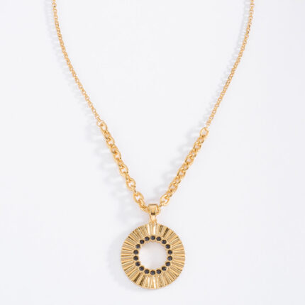 ARETES CON POSTE EN BAÑO DE ORO CON PIEDRAS COLOR NEGRO
