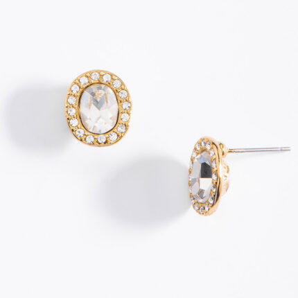 ARETES CON POSTE EN BAÑO DE PLATINO CON PIEDRAS COLOR CRISTAL
