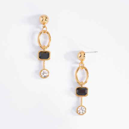 ARETES CON POSTE EN BAÑO DE ORO CON PIEDRA COLOR NEGRO