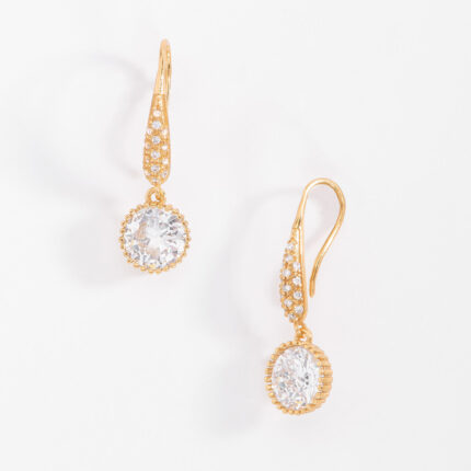 ARETES CON POSTE EN BAÑO DE ORO CON DIAMONICE COLOR CRISTAL