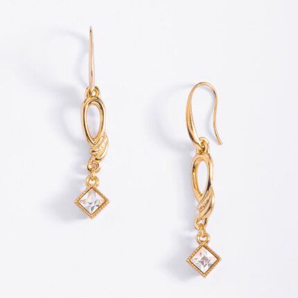 ARETES CON POSTE EN BAÑO DE ORO CON DIAMONICE COLOR CRISTAL