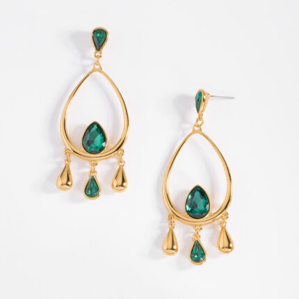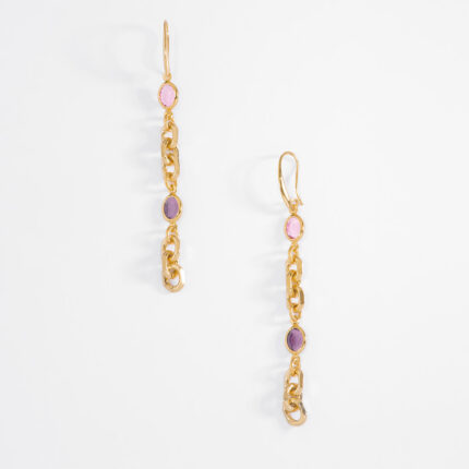 ARETES CON POSTE EN BAÑO DE ORO CON PIEDRA COLOR CRISTAL, ROSA, ESMERALDA, TOPAZ Y AGUAMARINA