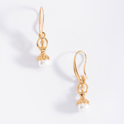 ARETES CON GARFIO EN BAÑO DE ORO CON DIAMONICE COLOR CRISTAL, PIEDRAS COLOR MONTANA Y PERLAS COLOR CREMA