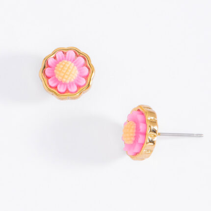ARETES CON POSTE EN BAÑO DE ORO CON PIEDRA EN TONO CRISTAL Y PINTURA EN TONO AMARILLO
