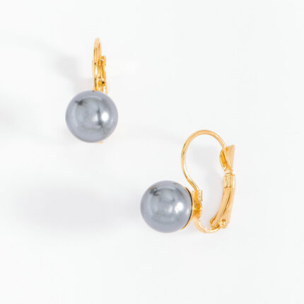 ARETES EN BAÑO DE ORO CON PERLA CHANEL EN TONO CREAM Y GRIS