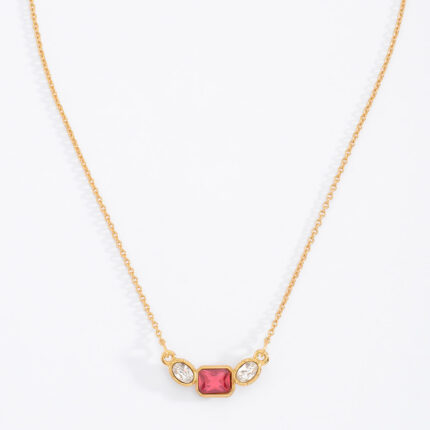 ARETES CON GANCHO PATENTE EN BAÑO DE ORO CON PIEDRA EN TONO ROJO Y CRISTAL