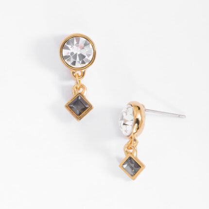 ARETES CON GARFIO EN BAÑO DE ORO CON PIEDRA COLOR GRIS