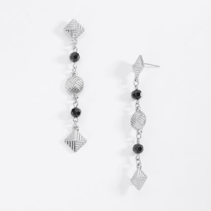ARETES CON CLIP EN BAÑO DE PLATINO CON PIEDRA COLOR NEGRO