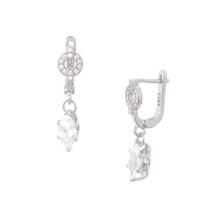 ARETES CON PATENTE EN BAÑO DE PLATINO CON DIAMONICE COLOR CRISTAL