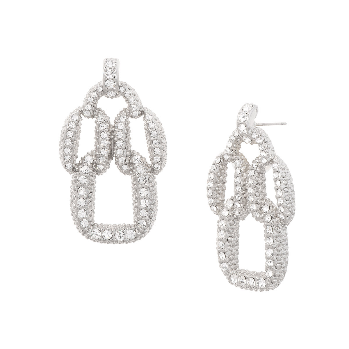 ARETES CON POSTE EN BAÑO DE PLATINO CON PIEDRAS COLOR CRISTAL