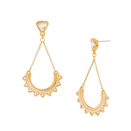 ARETES CON POSTE EN BAÑO DE ORO CON PIEDRA COLOR SIAM Y CRISTAL