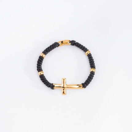 BRAZALETE AJUSTABLE CON BAÑO DE ORO Y ESMALTE NEGRO