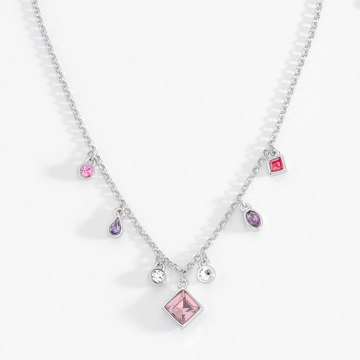 COLLAR DE 42 CM MAS 10 DE EXTENSIÓN EN BAÑO DE PLATINO CON PIEDRA EN TONO CRISTAL, ROSA, FIUSHA, AMATISTA, TANZANITA Y LIGHT AMATISTA