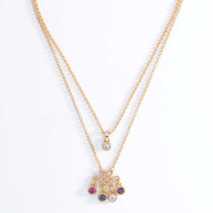 COLLAR EN BAÑO DE ORO DE 42 CM + 10 CM DE EXT. CON PIEDRAS COLOR CRISTAL, ESMERALDA Y FUCSIA