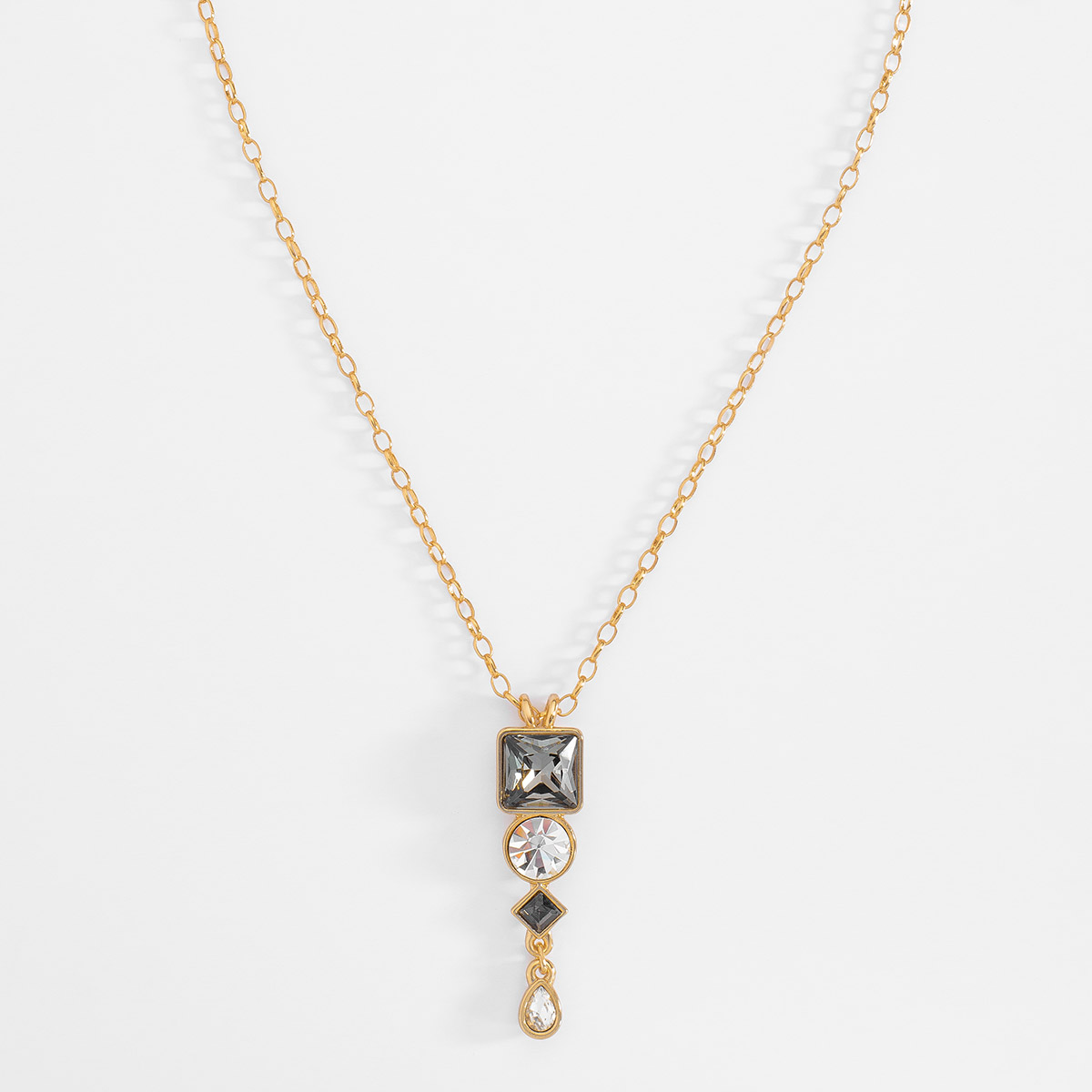 COLLAR EN BAÑO DE ORO DE 42 CM + 10 CM DE EXT. CON PIEDRAS COLOR CRISTAL Y GRIS