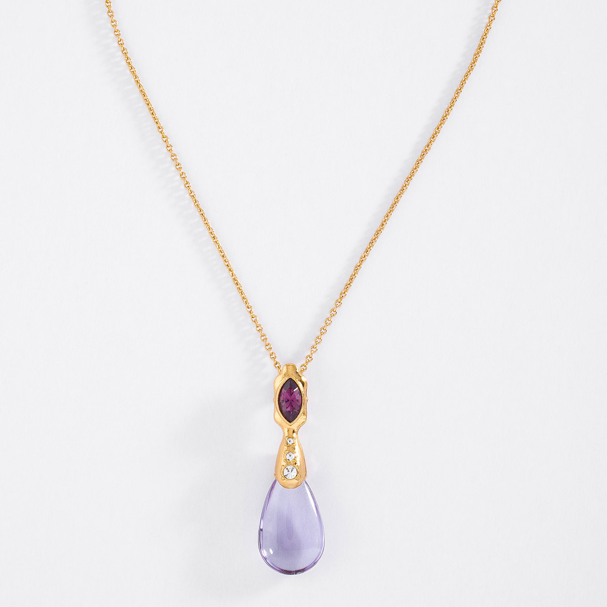 COLLAR EN BAÑO DE ORO DE 42 CM + 10 CM DE EXT. CON PIEDRAS COLOR CRISTAL Y AMATISTA