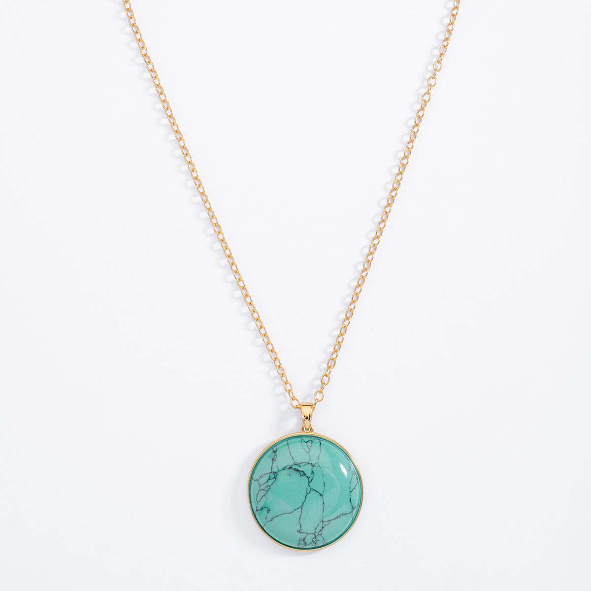 COLLAR EN BAÑO DE ORO DE 70 CM CON PIEDRA RESINA COLOR VERDE