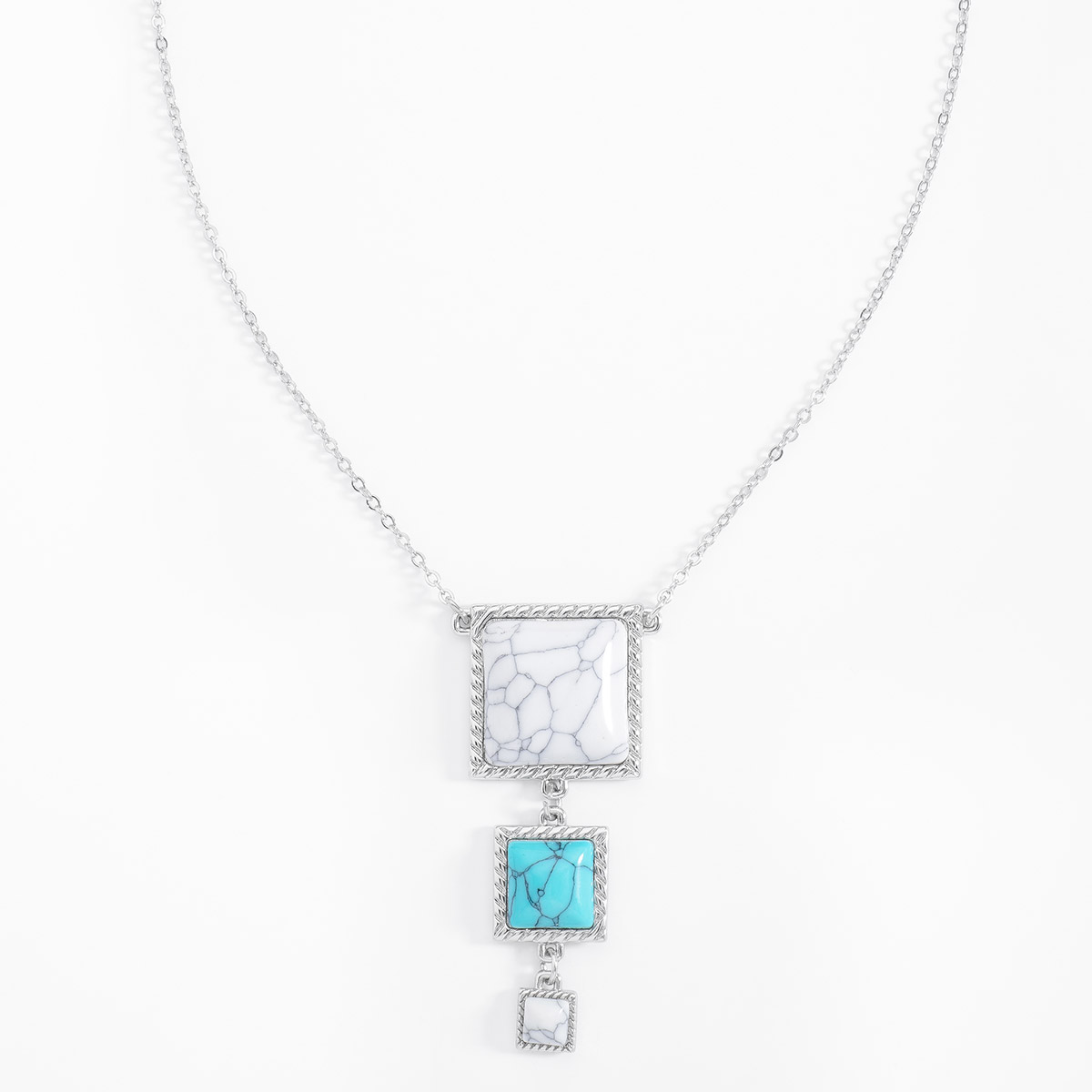 COLLAR EN BAÑO DE PLATINO DE 45 CM + 10 CM DE EXT. CON PIEDRAS COLOR AZUL Y BLANCO