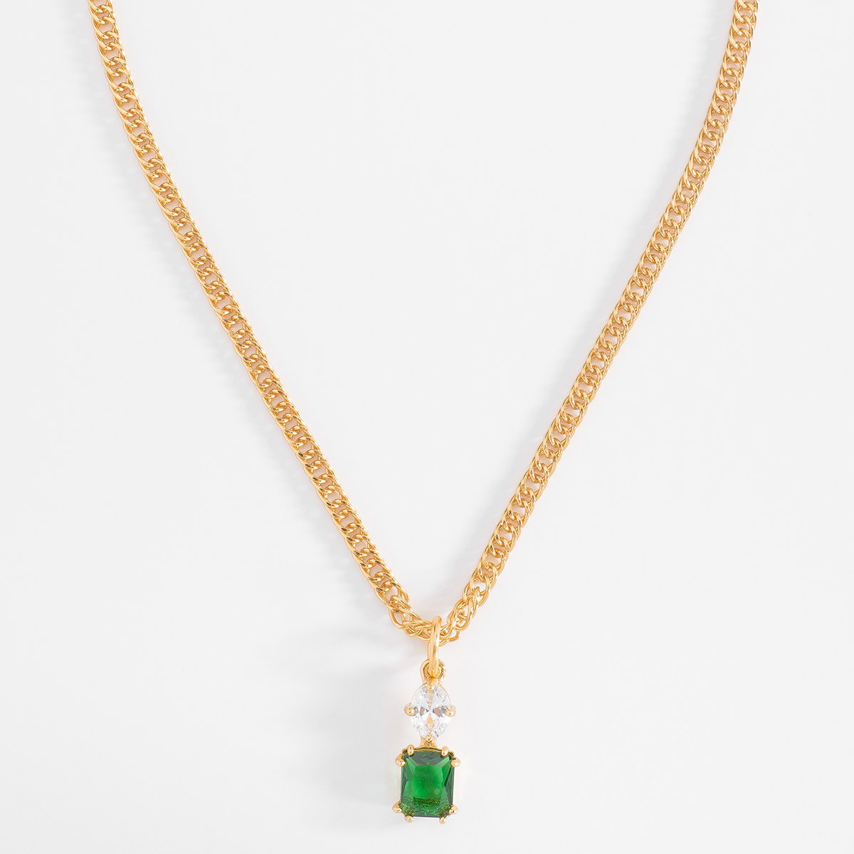 COLLAR EN BAÑO DE ORO DE 42 CM + 10 CM DE EXT. CON DIAMONICE COLOR CRISTAL Y ESMERALDA