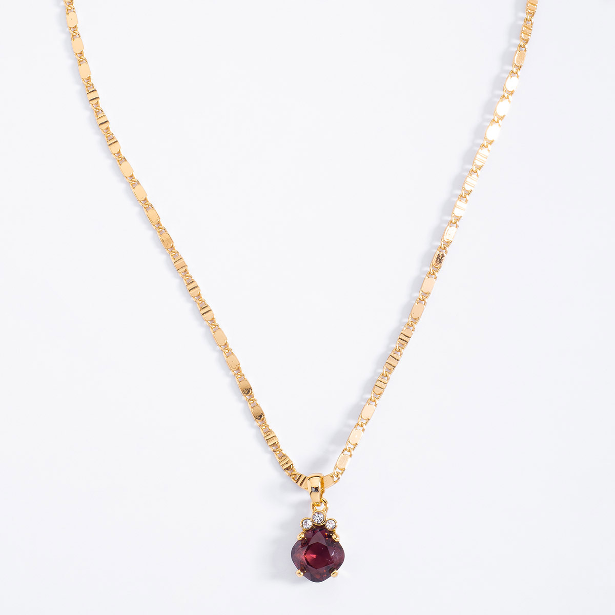 COLLAR EN BAÑO DE ORO DE 42 CM + 10 CM DE EXT. CON PIEDRAS COLOR CRISTAL Y BURGUNDY