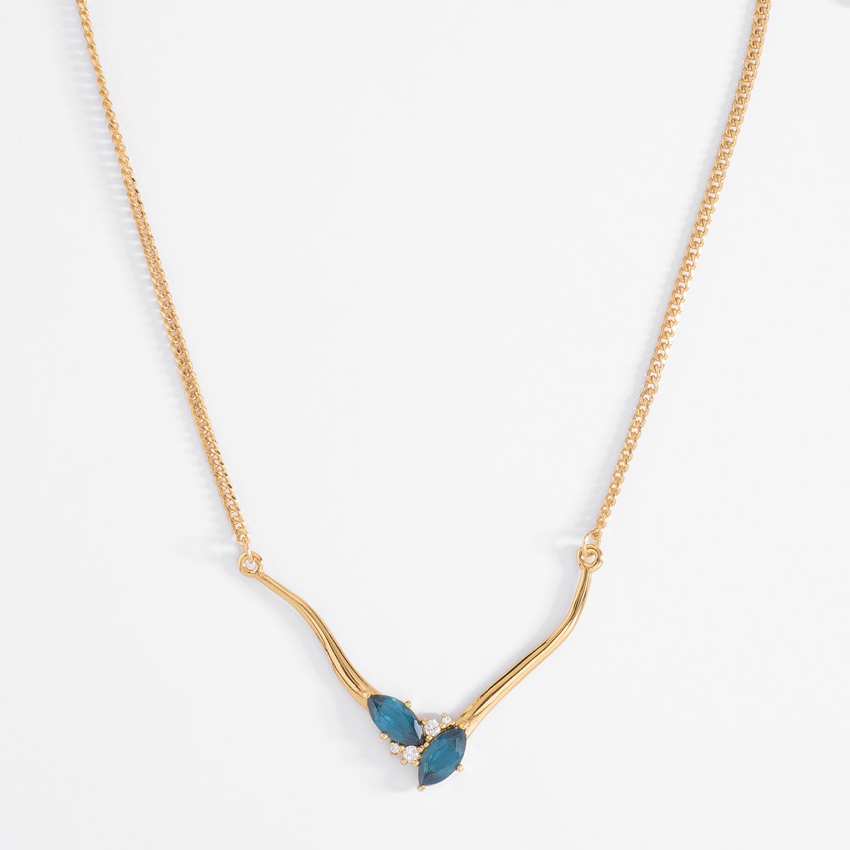 COLLAR EN BAÑO DE ORO DE 42 CM + 10 CM DE EXT. CON DIAMONICE COLOR CRISTAL Y AGUAMARINA