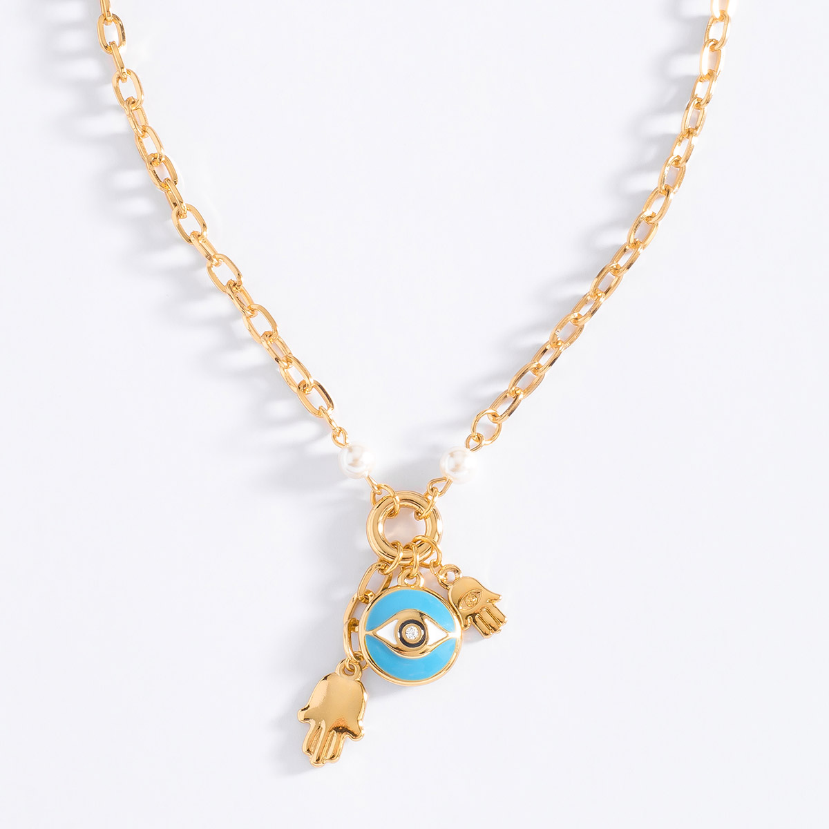 COLLAR DE 40 CM MÁS 10 CM DE EXTENSIÓN EN BAÑO DE ORO CON PERLA CREAM Y PIEDRA EN TONO CRISTAL
