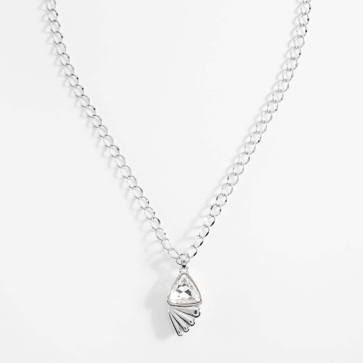 COLLAR EN BAÑO DE PLATINO DE 42 CM + 10 CM DE EXT. CON PIEDRA COLOR CRISTAL