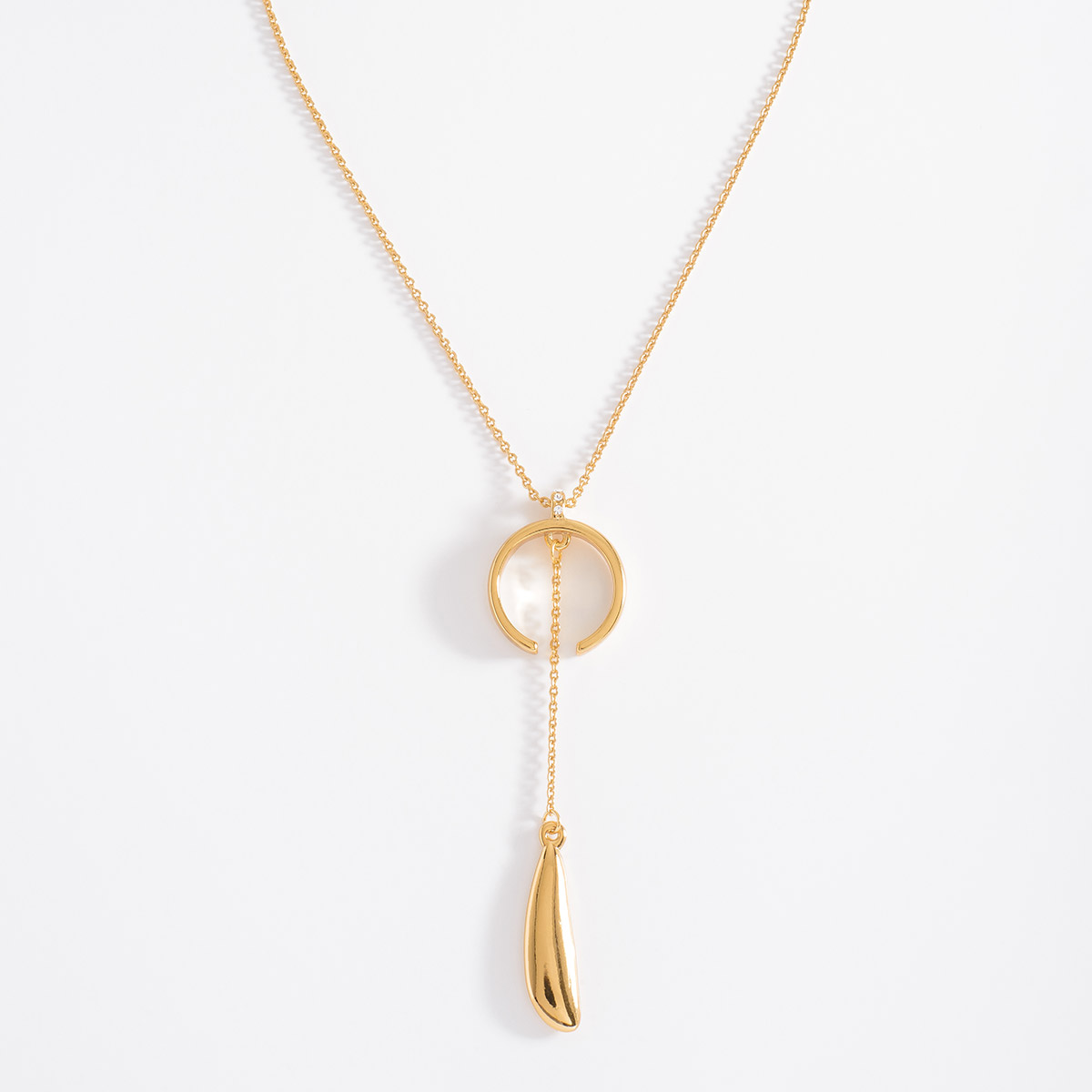 COLLAR EN BAÑO DE ORO DE 42 CM + 10 CM DE EXT. CON PIEDRA COLOR CRISTAL