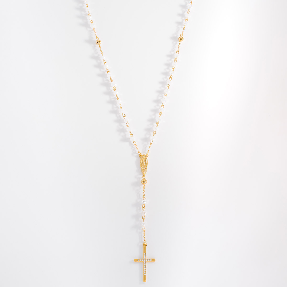 COLLAR EN BAÑO DE ORO DE 43 CM CON CUENTAS COLOR ÓPALO BLANCO