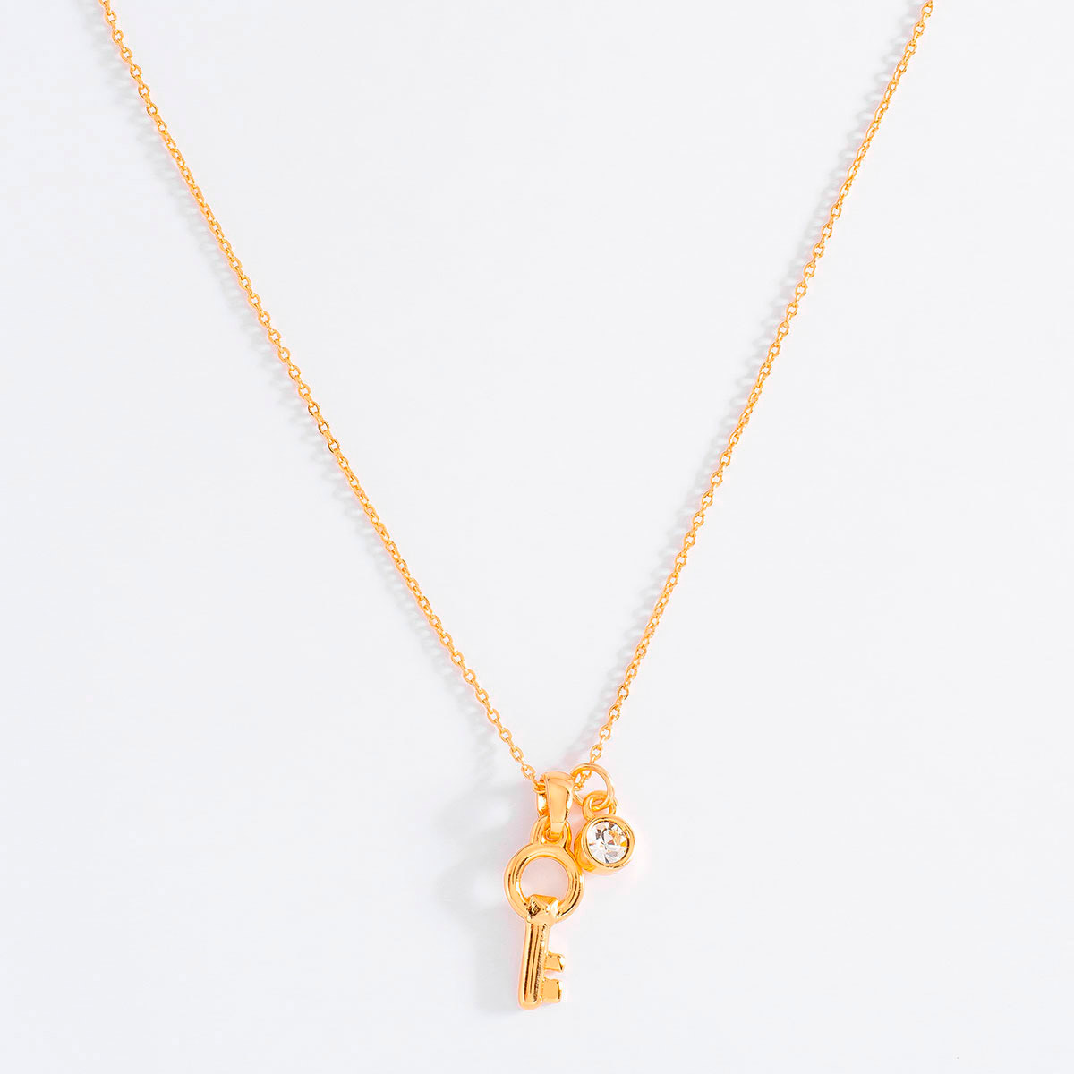 COLLAR EN BAÑO DE ORO DE 42 CM + 10 CM DE EXT. CON PIEDRA COLOR CRISTAL