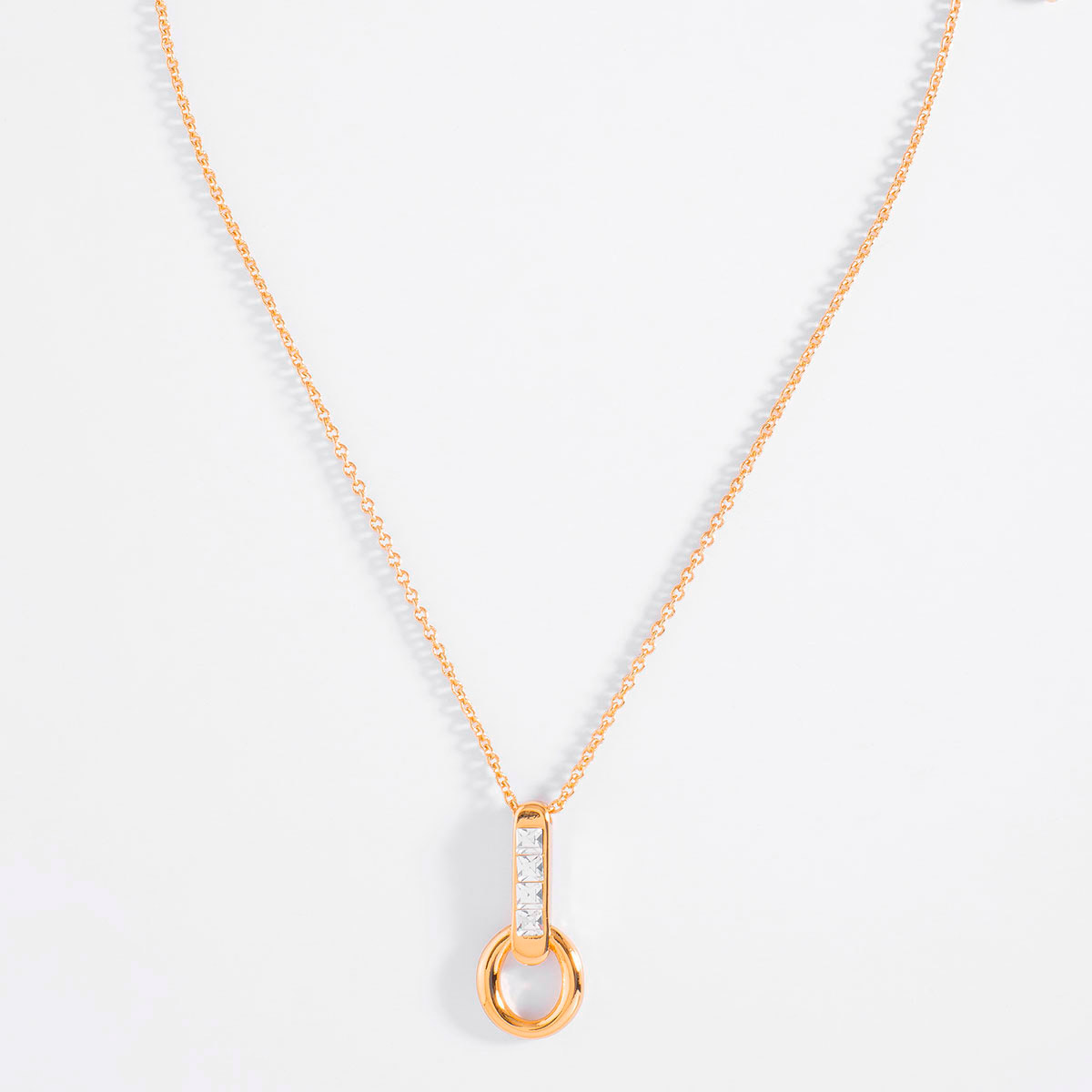 COLLAR EN BAÑO DE ORO DE 42 CM + 10 CM DE EXT. CON PIEDRAS COLOR CRISTAL