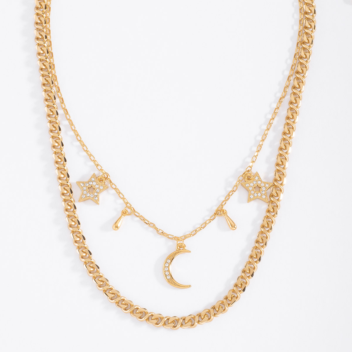 COLLAR EN BAÑO DE ORO DE 40 CM + 10 CM DE EXT. CON PIEDRAS COLOR CRISTAL