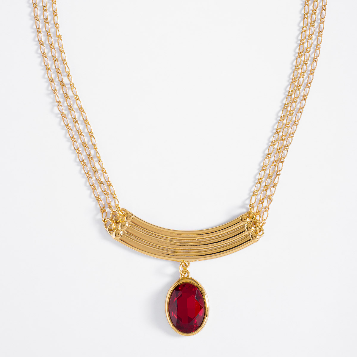 COLLAR EN BAÑO DE ORO DE 42 CM + 10 CM DE EXT. CON PIEDRA COLOR SIAM