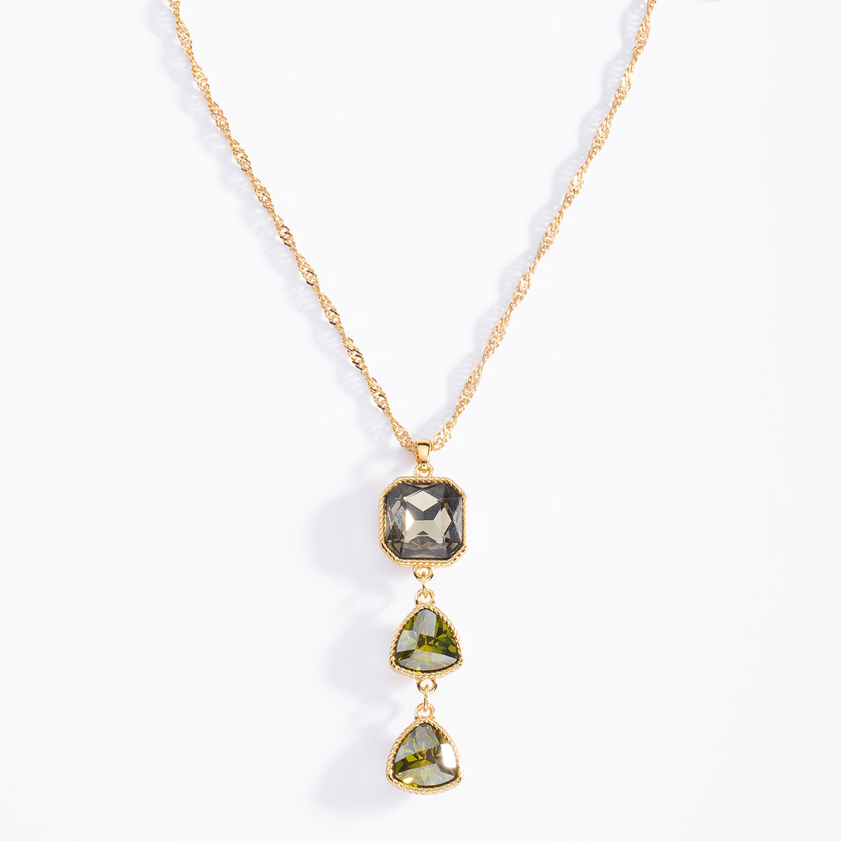 COLLAR EN BAÑO DE ORO DE 42 CM + 10 CM DE EXT. CON PIEDRAS COLOR VERDE OLIVO