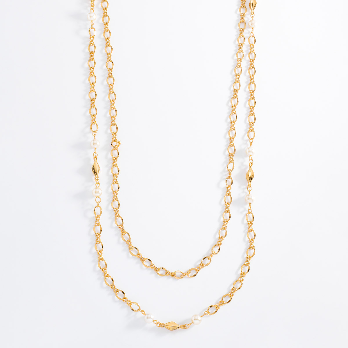 COLLAR EN BAÑO DE ORO DE 88 CM CON PERLAS COLOR CREMA