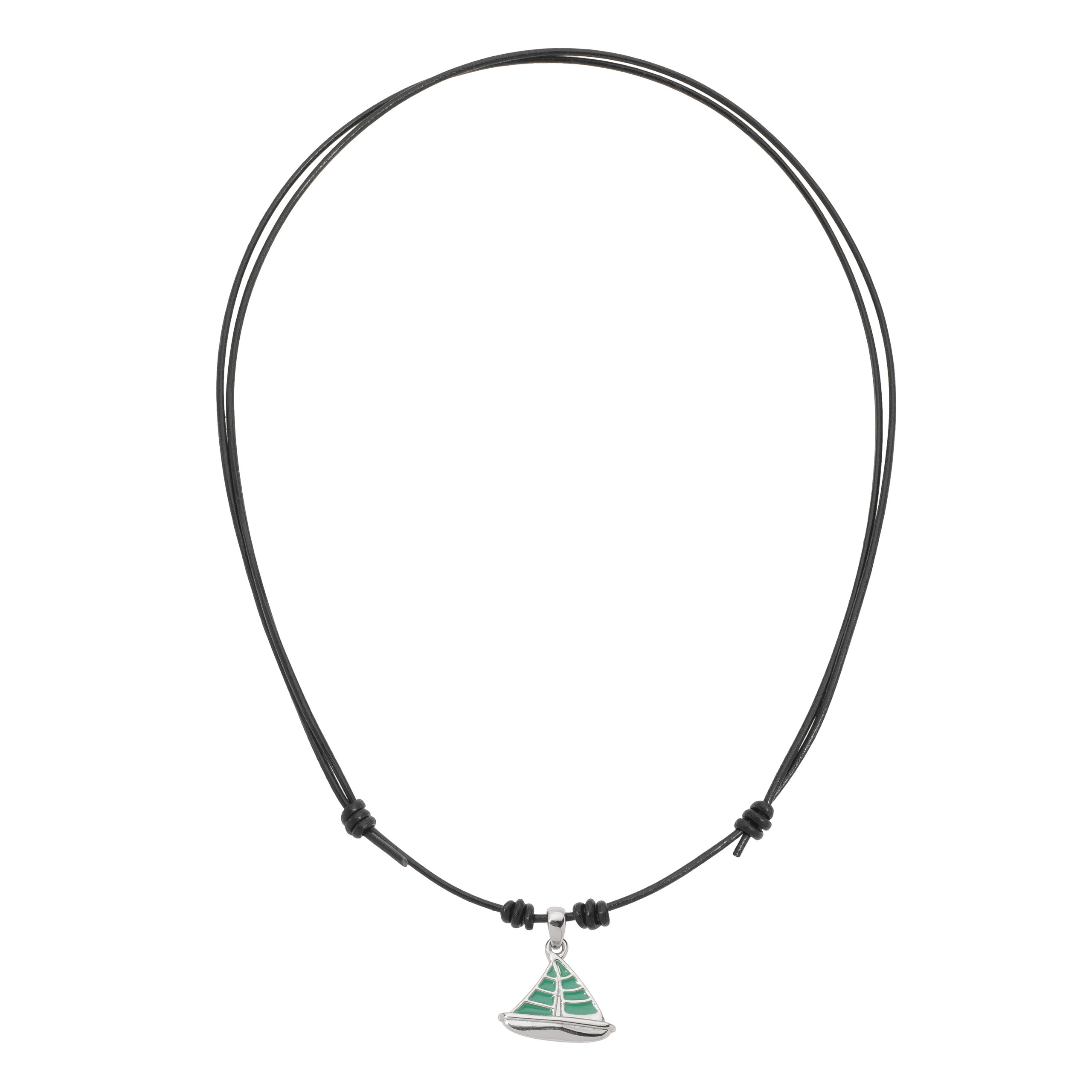 COLLAR DE CORDÓN AJUSTABLE CON DIJE EN BAÑO DE PLATINO CON ESMALTE COLOR VERDE