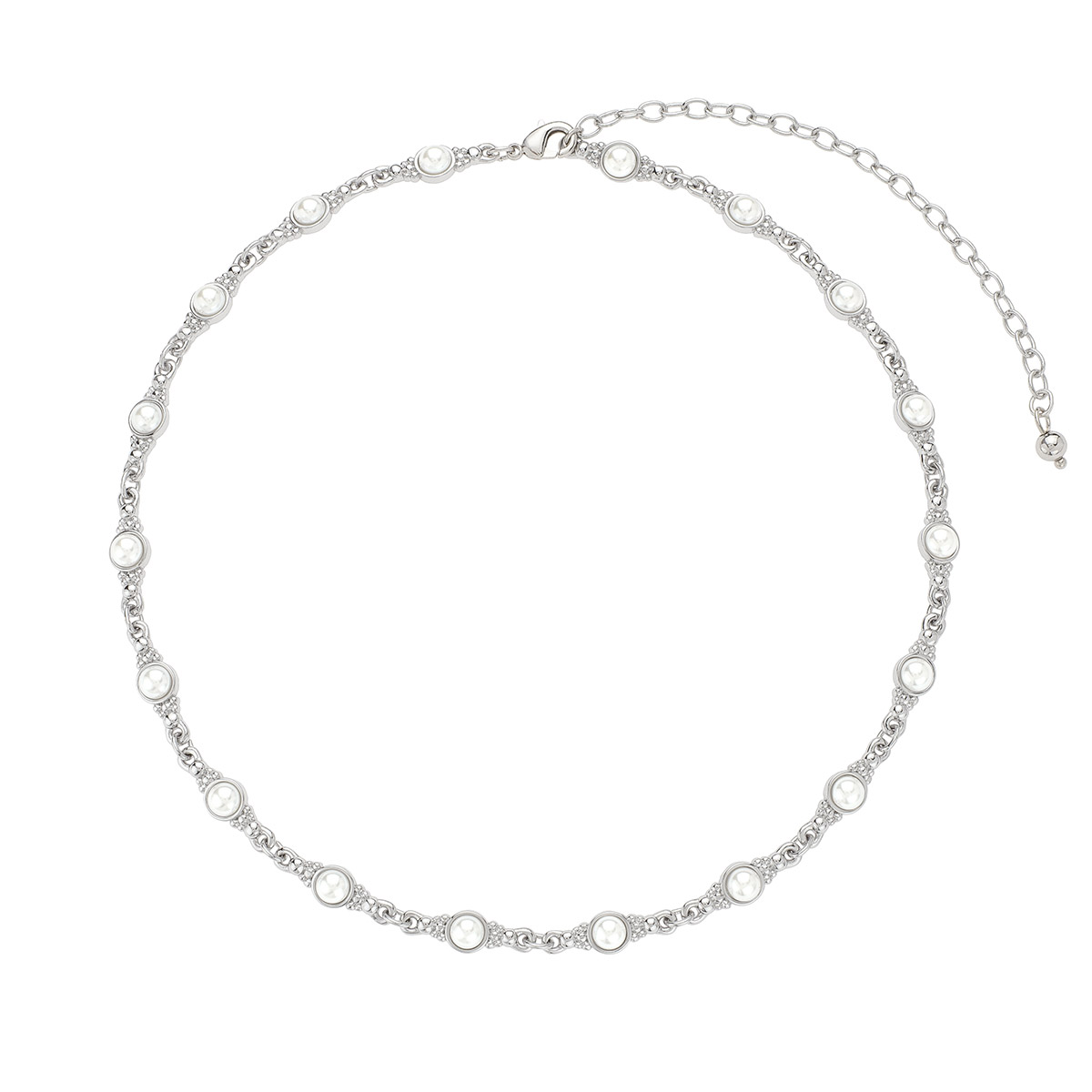 COLLAR EN BAÑO DE PLATINO DE 42 CM 10 CM DE EXT. CON PERLAS COLOR CREMA