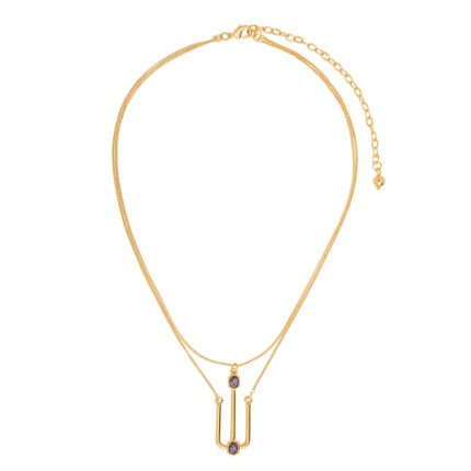 COLLAR EN BAÑO DE ORO Y PLATINO DE 54 CM 10 CM DE EXT. CON PIEDRA COLOR CRISTAL Y ESMALTE COLOR AZUL