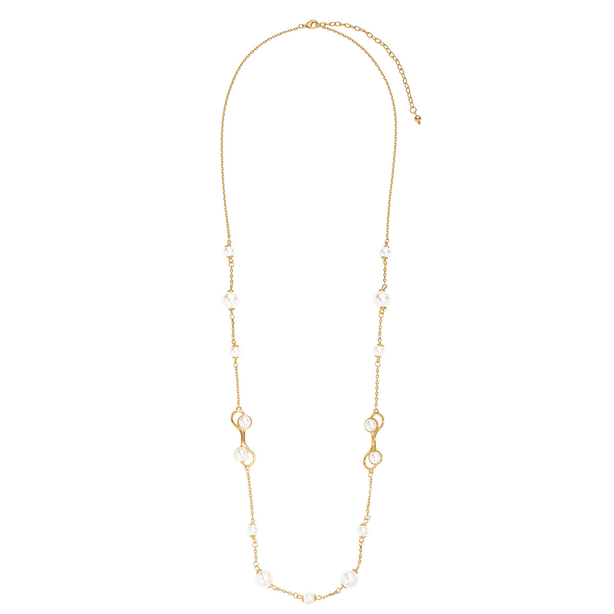 COLLAR EN BAÑO DE ORO DE 90 CM 10 CM DE EXT. CON PERLAS COLOR CREMA