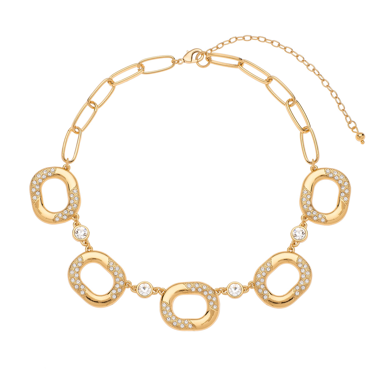 COLLAR EN BAÑO DE ORO DE 42 CM 10 CM DE EXT. CON PIEDRA COLOR CRISTAL