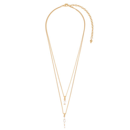 COLLAR EN BAÑO DE ORO DE 46 CM + 10 CM EXT. CON ESMALTE Y DIAMONICE COLOR CRISTAL