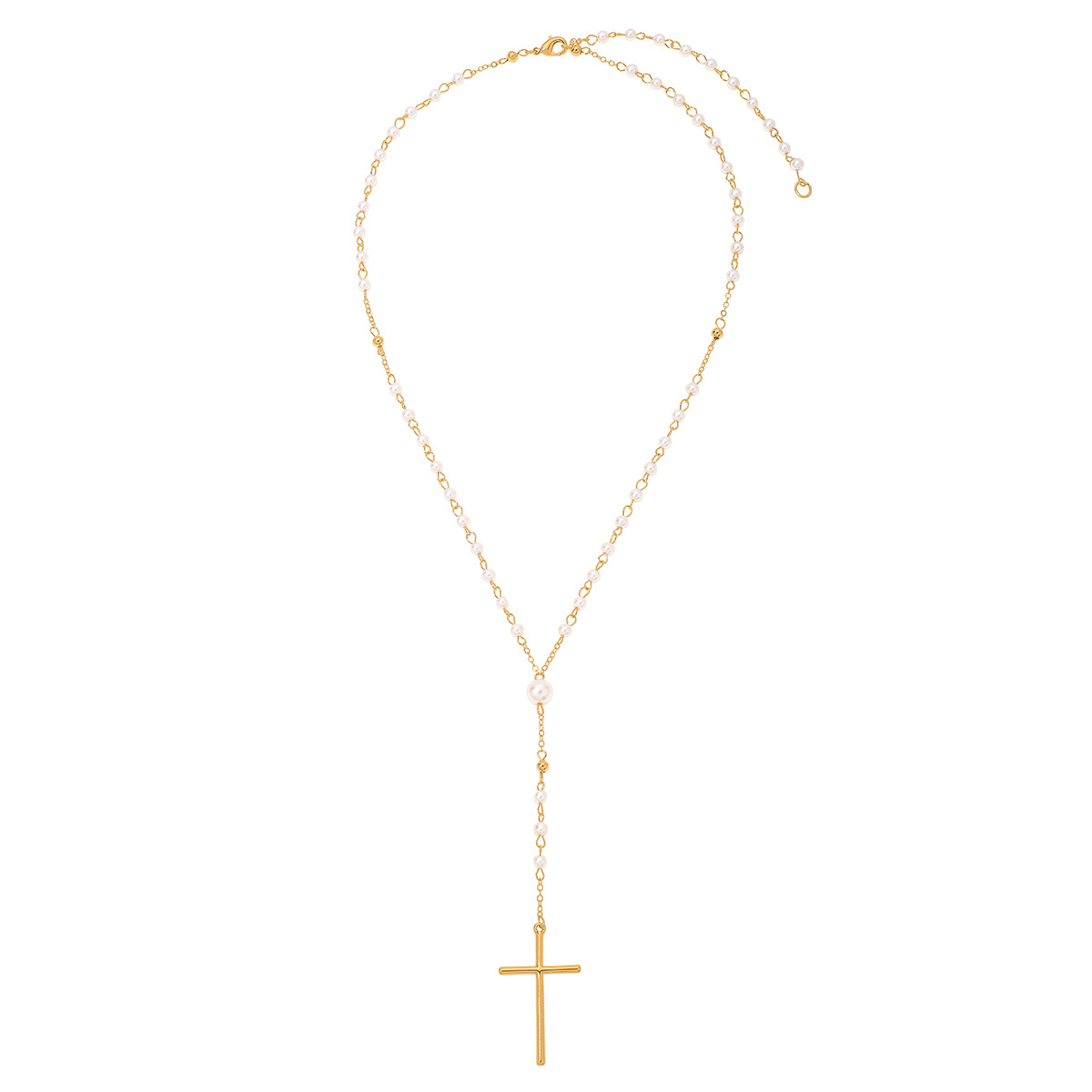 COLLAR EN BAÑO DE ORO DE 65 CM CON PERLAS COLOR CREMA