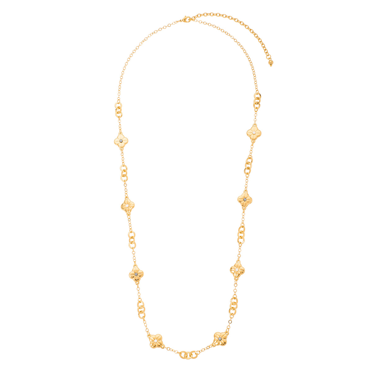 COLLAR EN BAÑO DE ORO DE 80 CM + 10 CM EXT. CON PERLAS COLOR GRIS Y CREMA