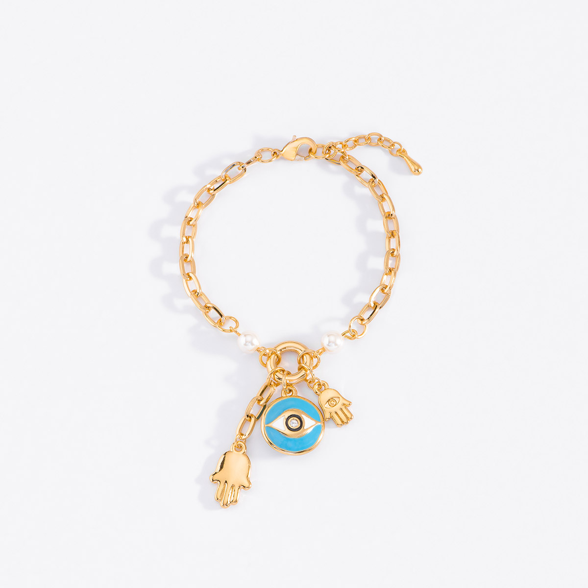 PULSERA DE 18 CM MAS 2 CM DE EXTENSION EN BAÑO DE ORO CON PERLA Y ESMALTE EN VARIOS TONOS