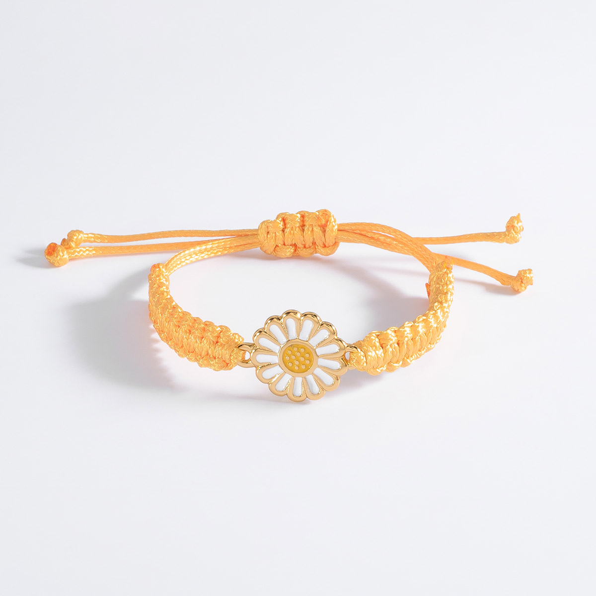 PULSERA DE CORDÓN AMARILLO AJUSTABLE CON ESMALTE COLOR BLANCO Y AMARILLO