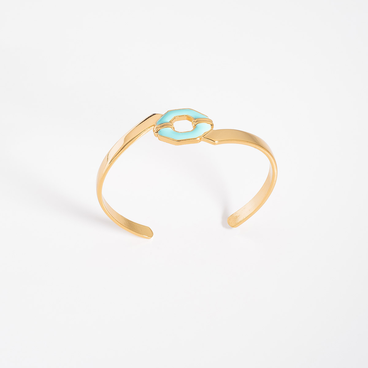 PULSERA EN BAÑO DE ORO AJUSTABLE CON ESMALTE COLOR VERDE AGUA