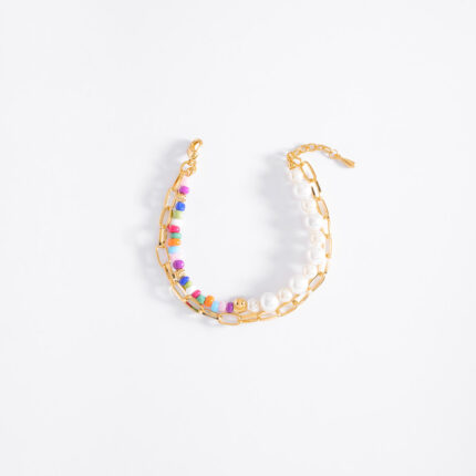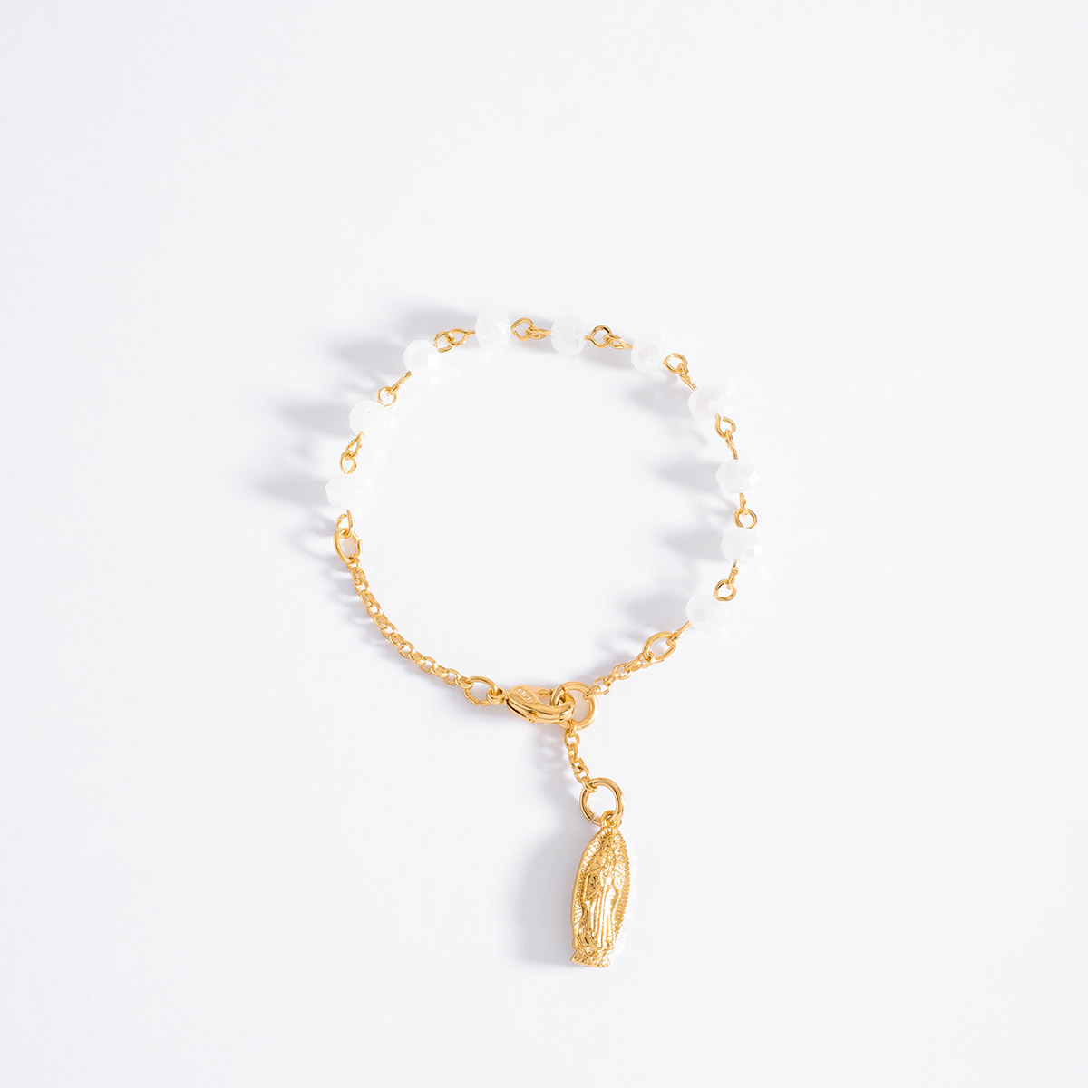 PULSERA EN BAÑO DE ORO DE 18 CM CON CUENTAS COLOR ÓPALO BLANCO