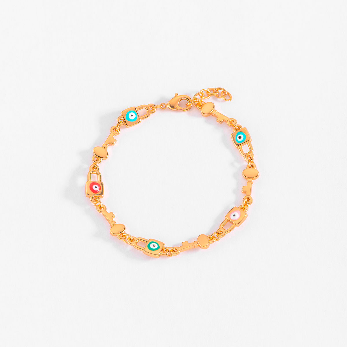 PULSERA EN BAÑO DE ORO DE 19 CM + 2 CM DE EXT. CON ESMALTE VARIOS COLORES (OJOS)